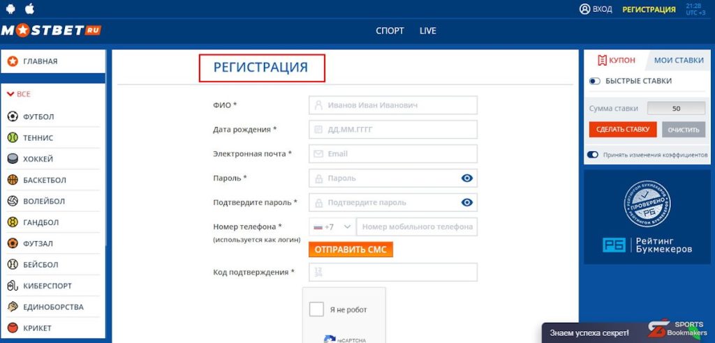 Как делать ставки в Mostbet